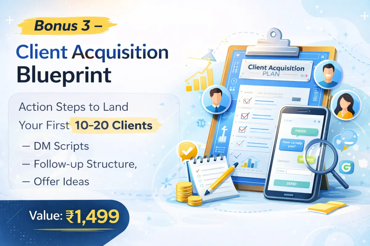Job ho ya na ho, aapko pata hai ki aap clients ke liye results laa sakte ho. Aapke paas ₹50,000–₹1,00,000 monthly income potential dene wala skill-set hai.