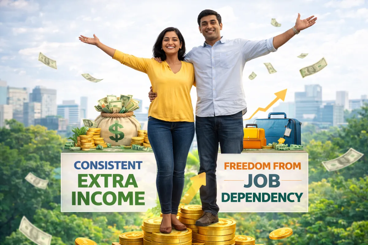 Shaam ko ya weekends pe 2–3 ghante dekar aap 2–3 clients handle kar rahe ho. Har month extra cash flow aa raha hai jo EMI, savings, travel sab cover kar raha hai.